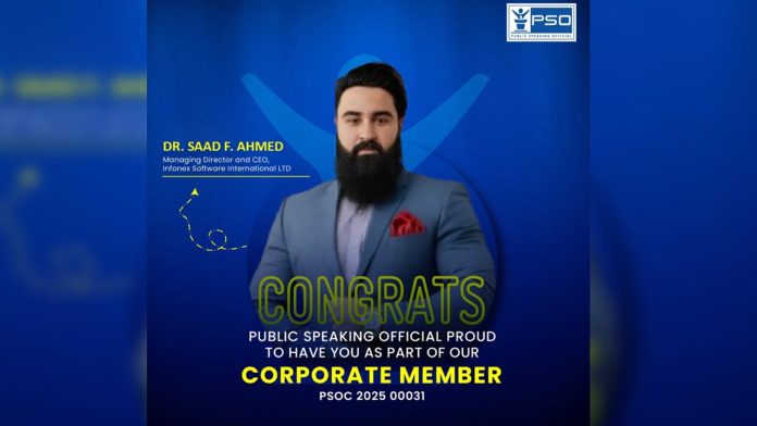 বাংলাদেশের তরুণ উদ্যোক্তা, গবেষক ও ইঞ্জিনিয়ার ড. সাদ এফ. আহমেদ সম্প্রতি পাবলিক স্পিকিং অফিসিয়াল প্ল্যাটফর্মে/প্রতিষ্ঠানে যুক্ত হয়েছেন। তাঁর এই যোগদান শুধু একটি নতুন দায়িত্ব নয়, বরং দেশের তরুণ প্রজন্মের যোগাযোগ দক্ষতা ও নেতৃত্ব বিকাশে এক অনন্য মাইলফলক।